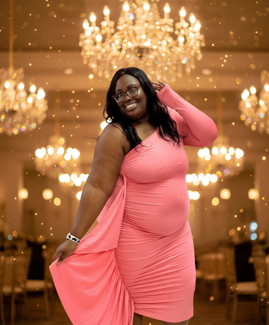 • This elegant Cold Shoulder Vibes Ruffled Dress is perfect for any occasion.